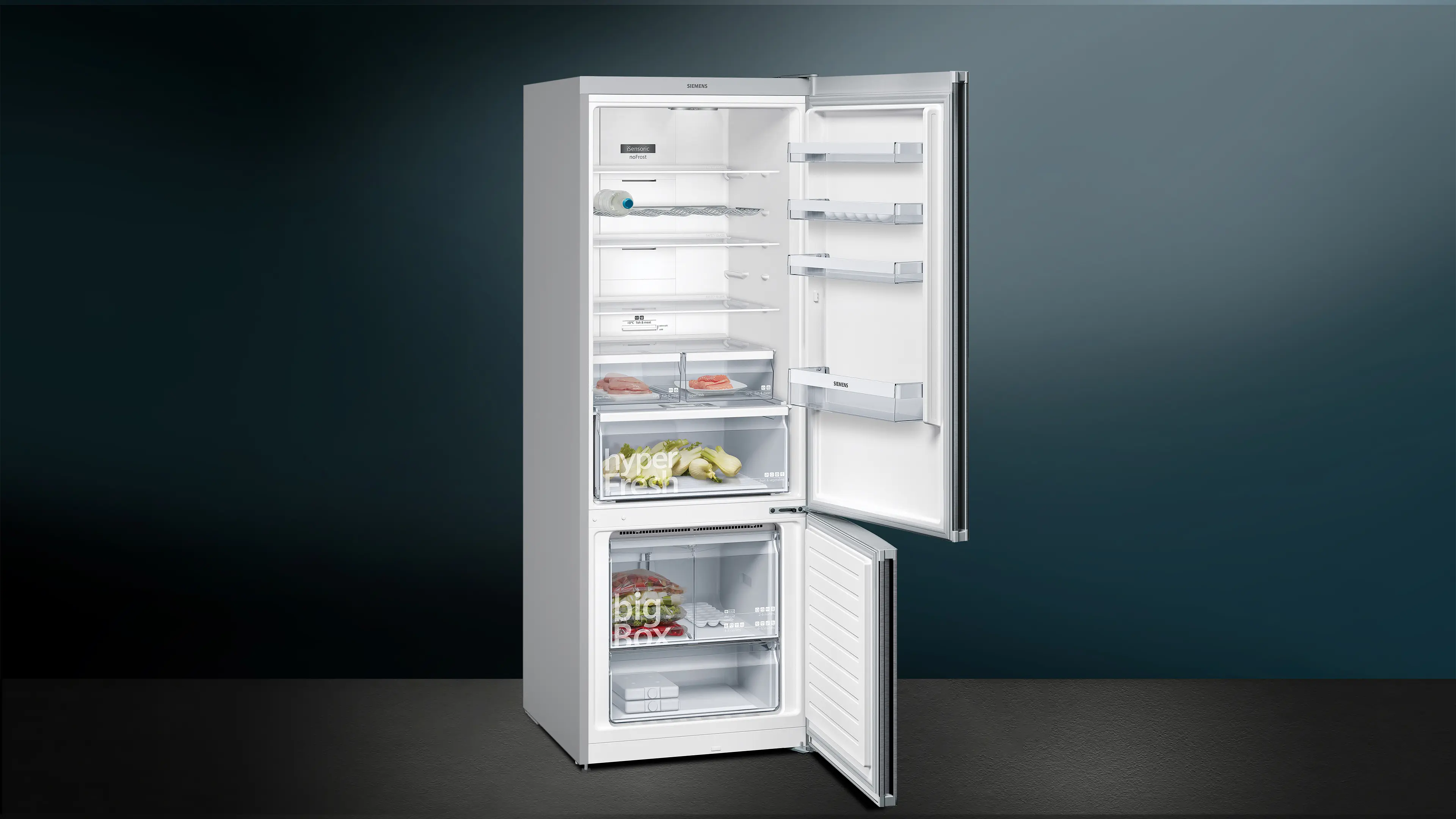 iQ300 free-standing fridge-freezer with freezer at bottom 193 x 70 cm Black stainless steelKG56NXX40I
