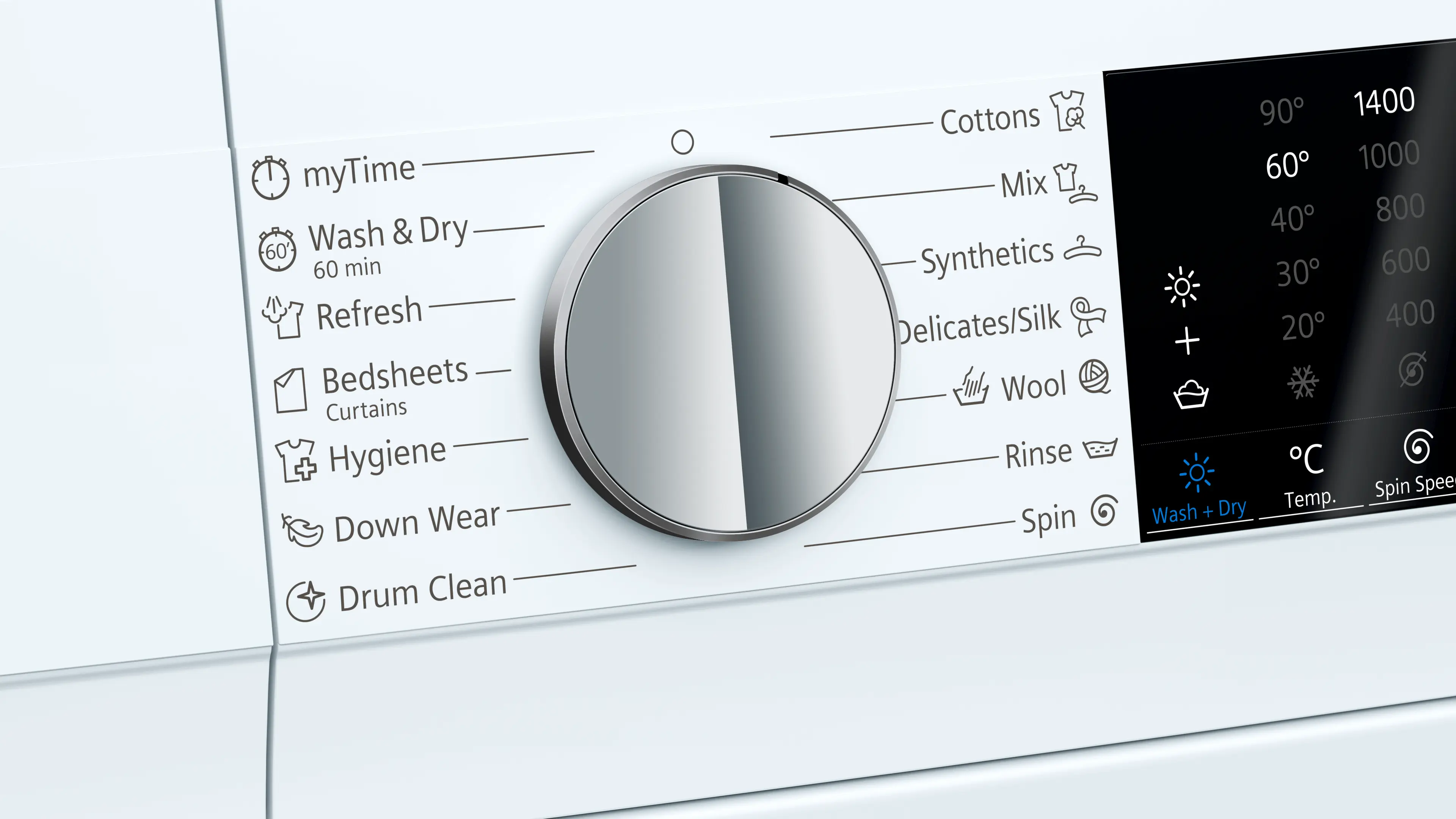 Whites and coloureds programme, Easy-care programme, Delicates programme, Woollens hand wash programme, additional programmes