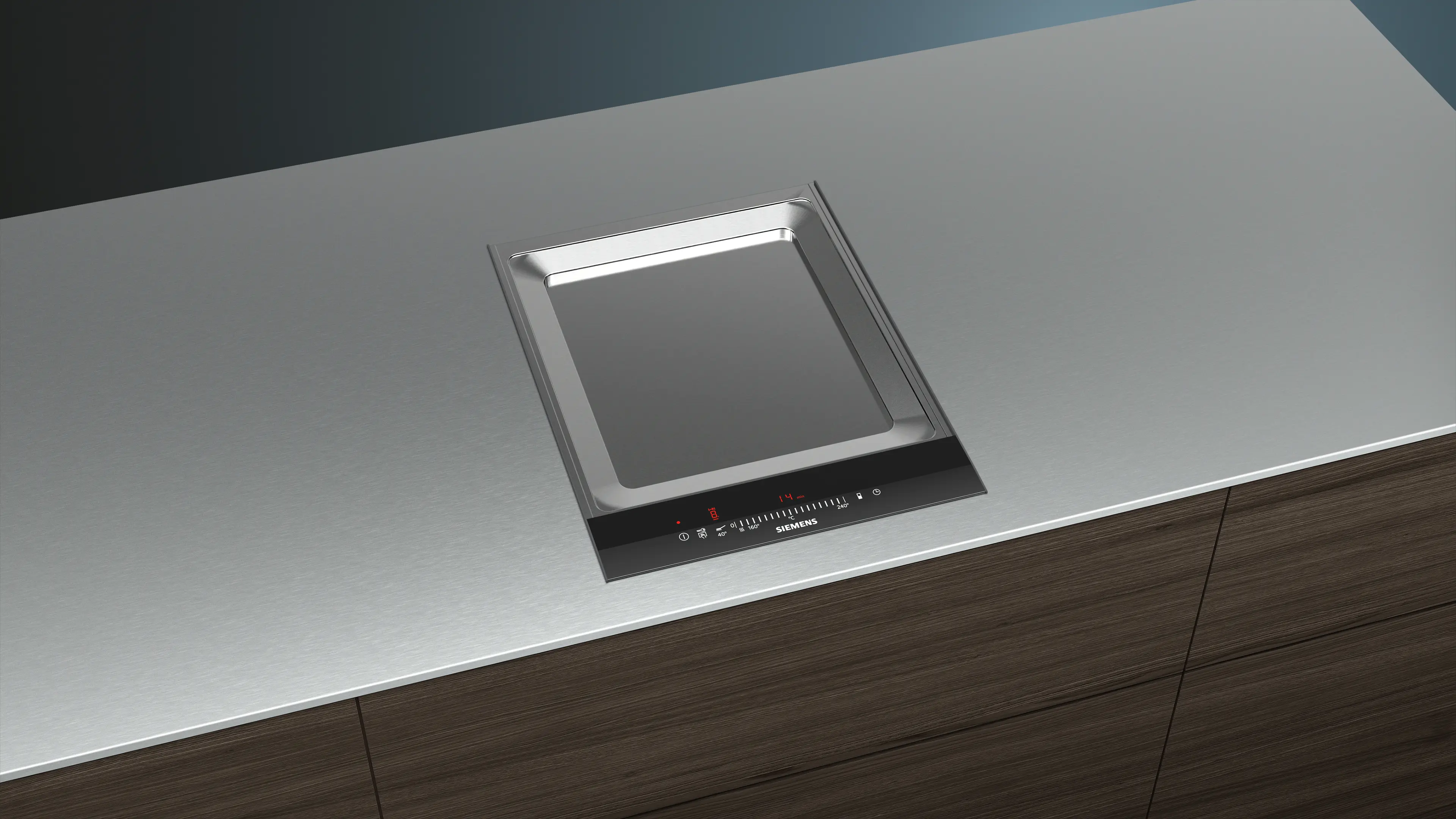 The 40 cm wide teppanyaki is ideal for combining with other Domino or faceted design cooktops.